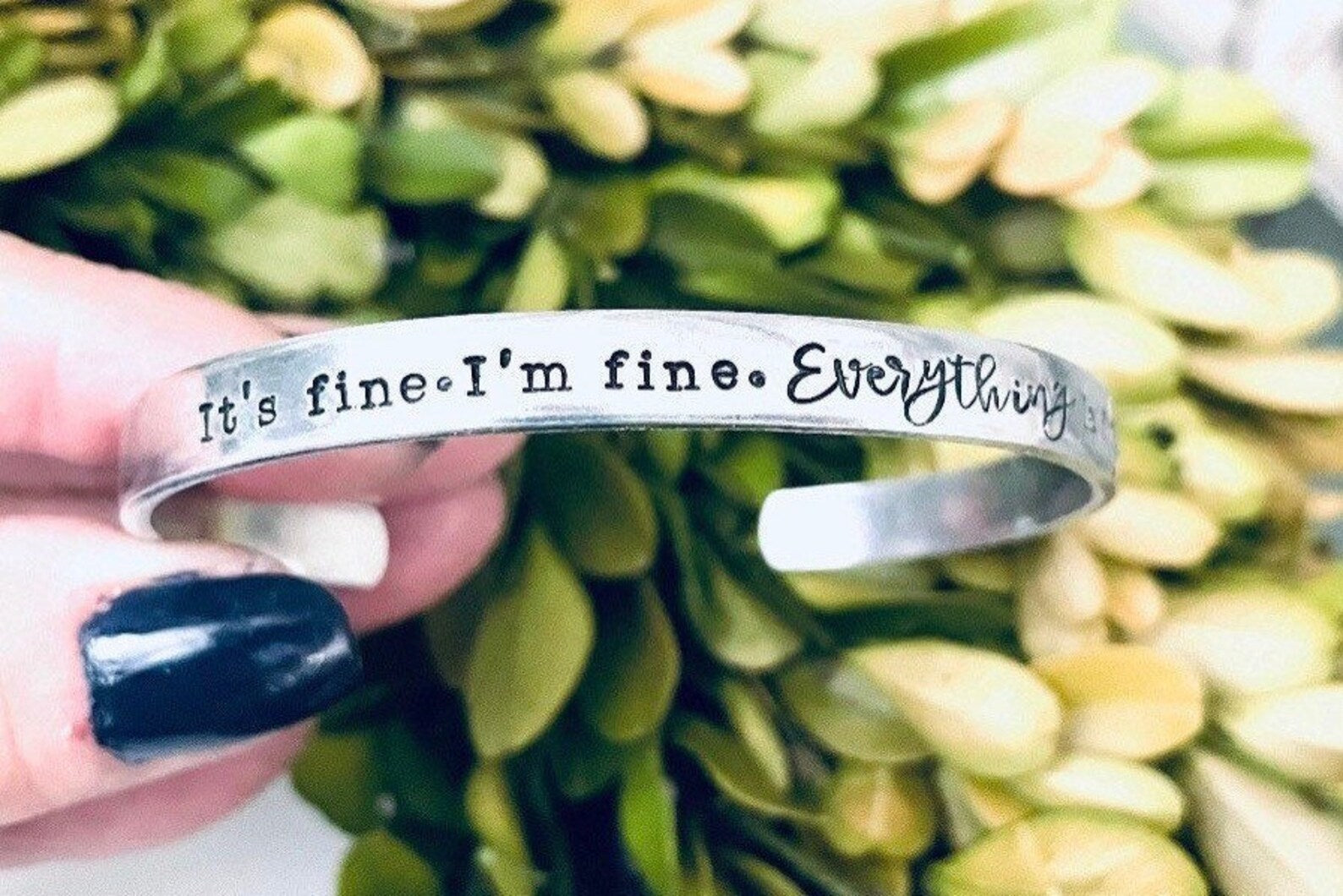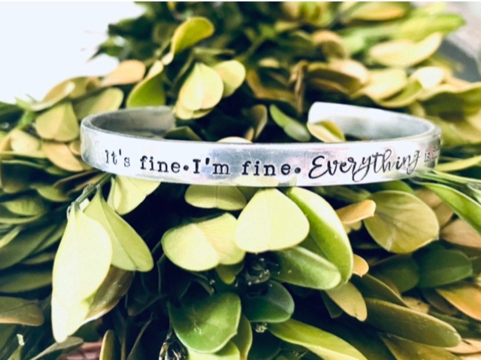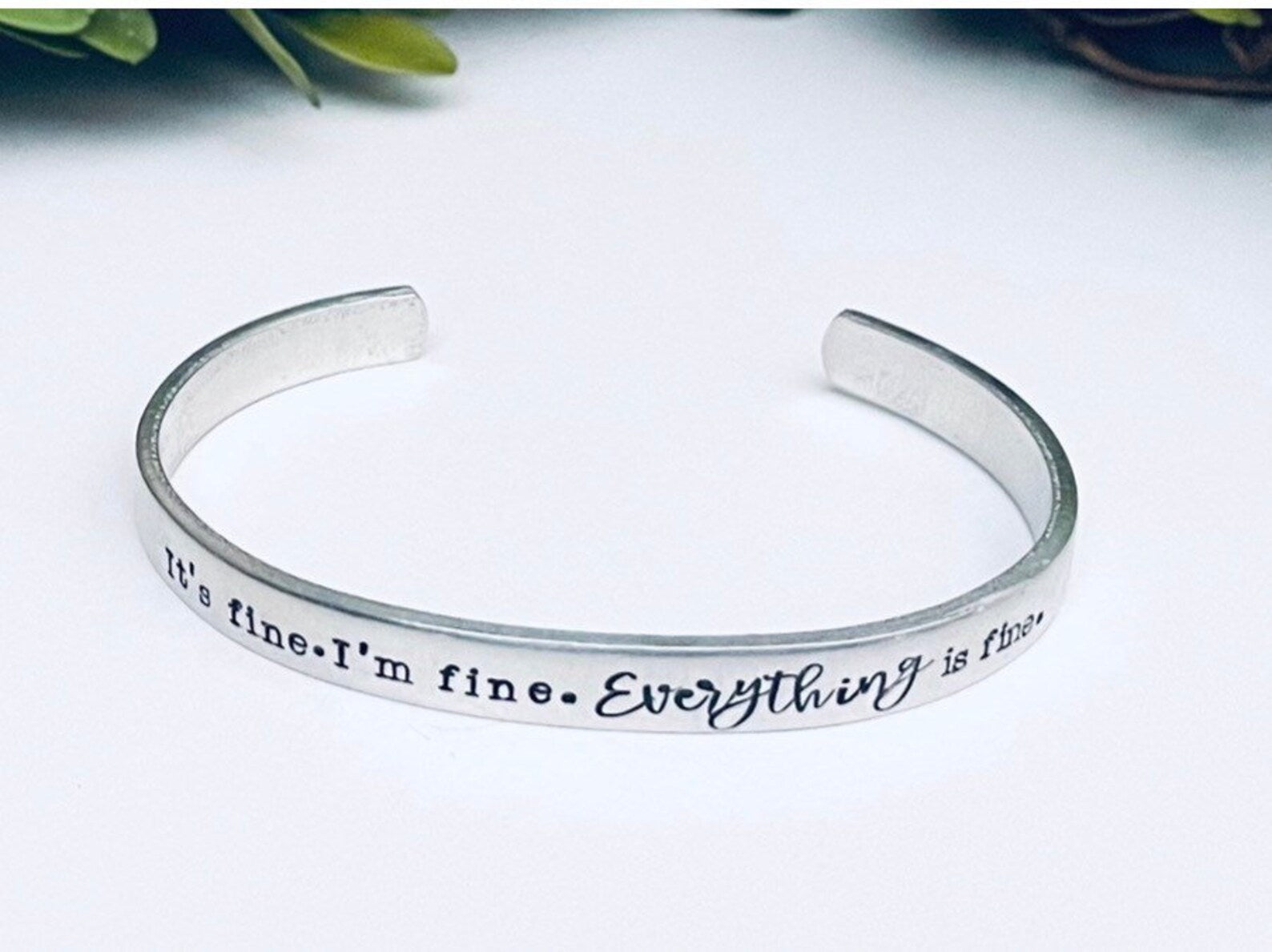 It’s fine I’m fine everything is fine hand stamped bracelet introvert gift sarcastic bracelet fun gift birthday gift for her I’m fine