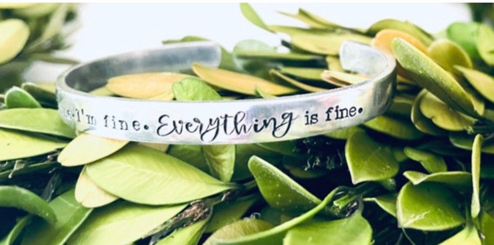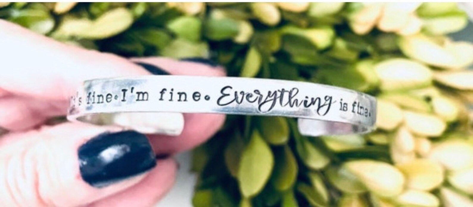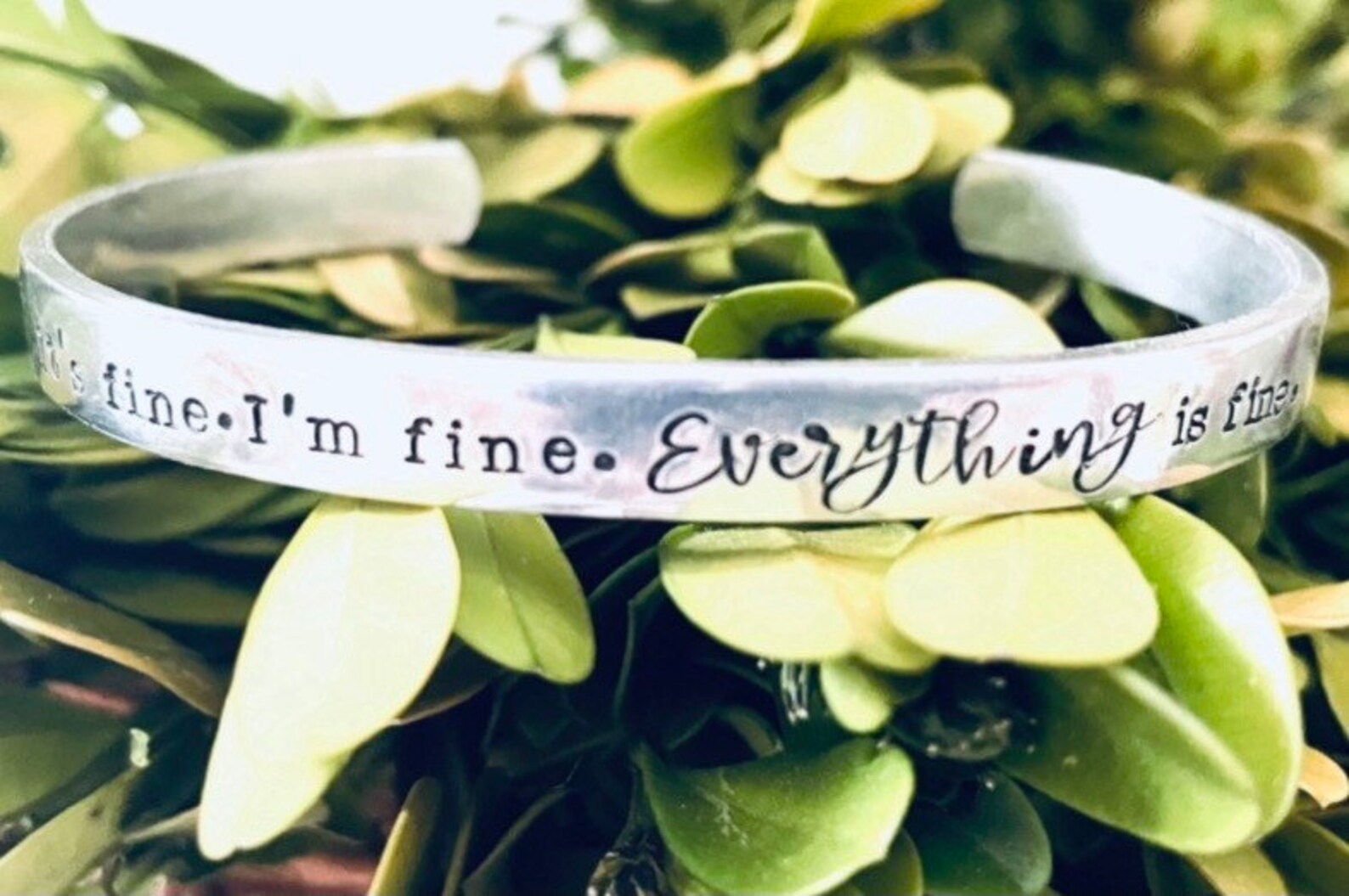 It’s fine I’m fine everything is fine hand stamped bracelet introvert gift sarcastic bracelet fun gift birthday gift for her I’m fine