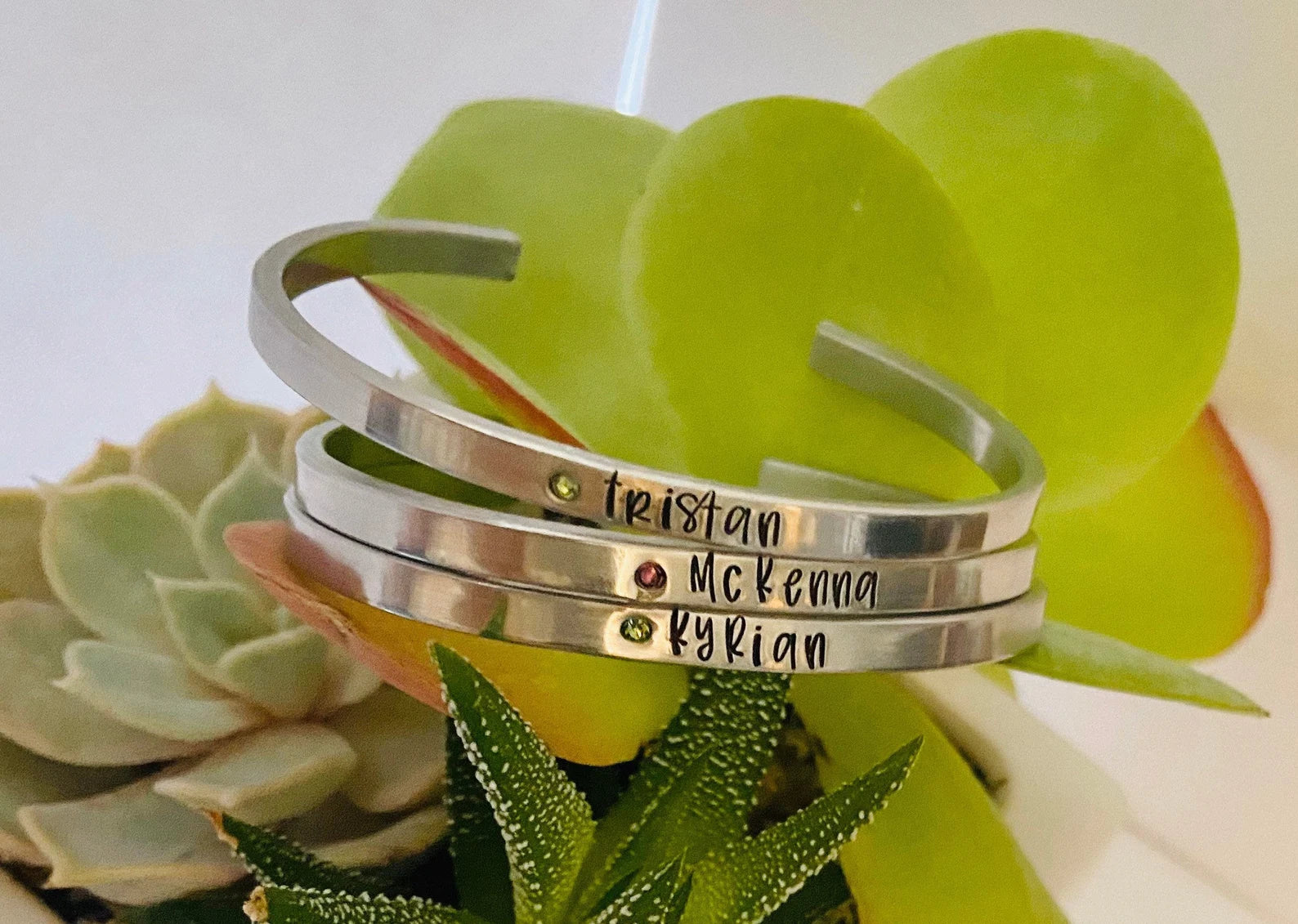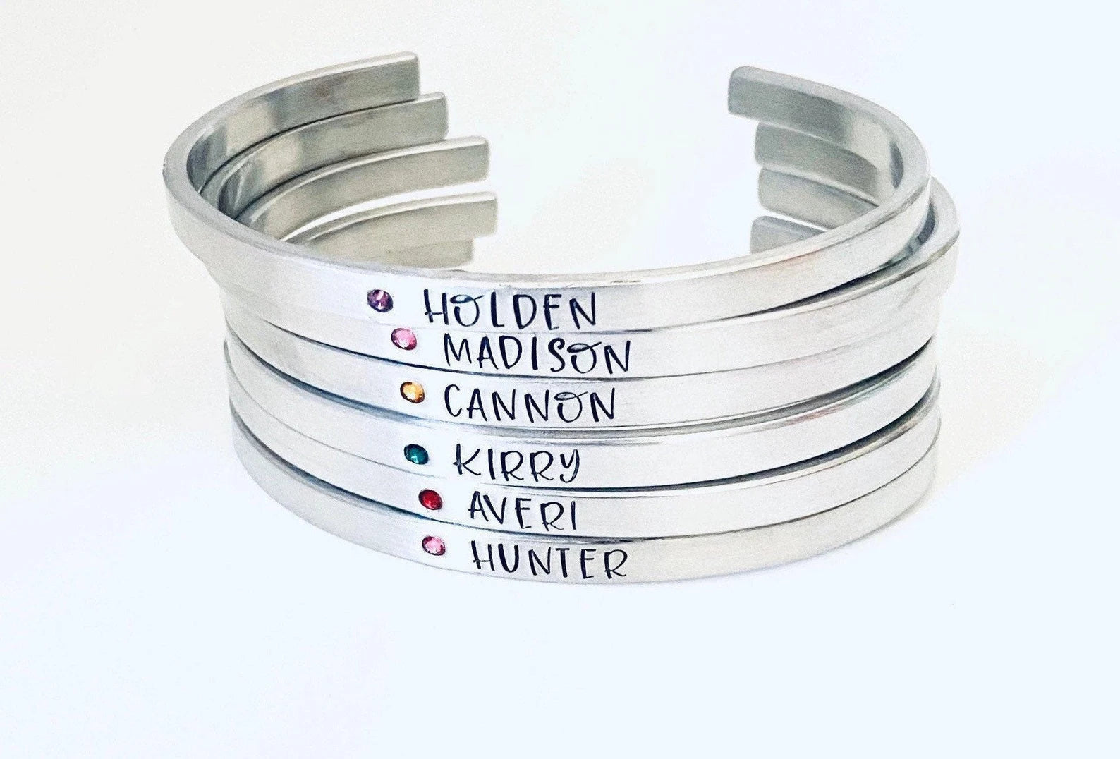 Personalized cuff bracelet kids names birthstone bracelets hand stamped skinny stacking bracelets hand stamped customized name bracelets